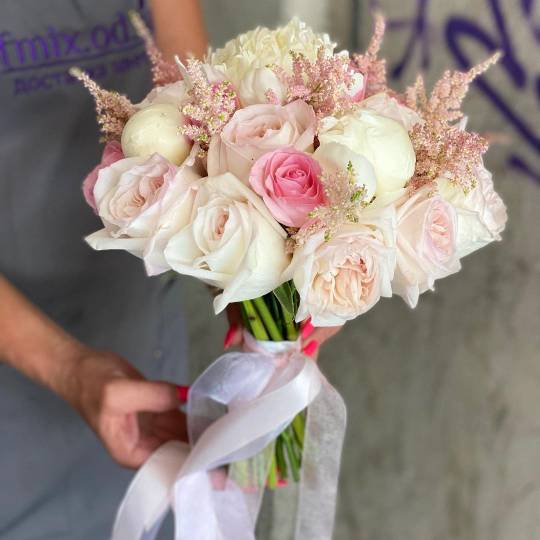Букет невесты из роз и пионов