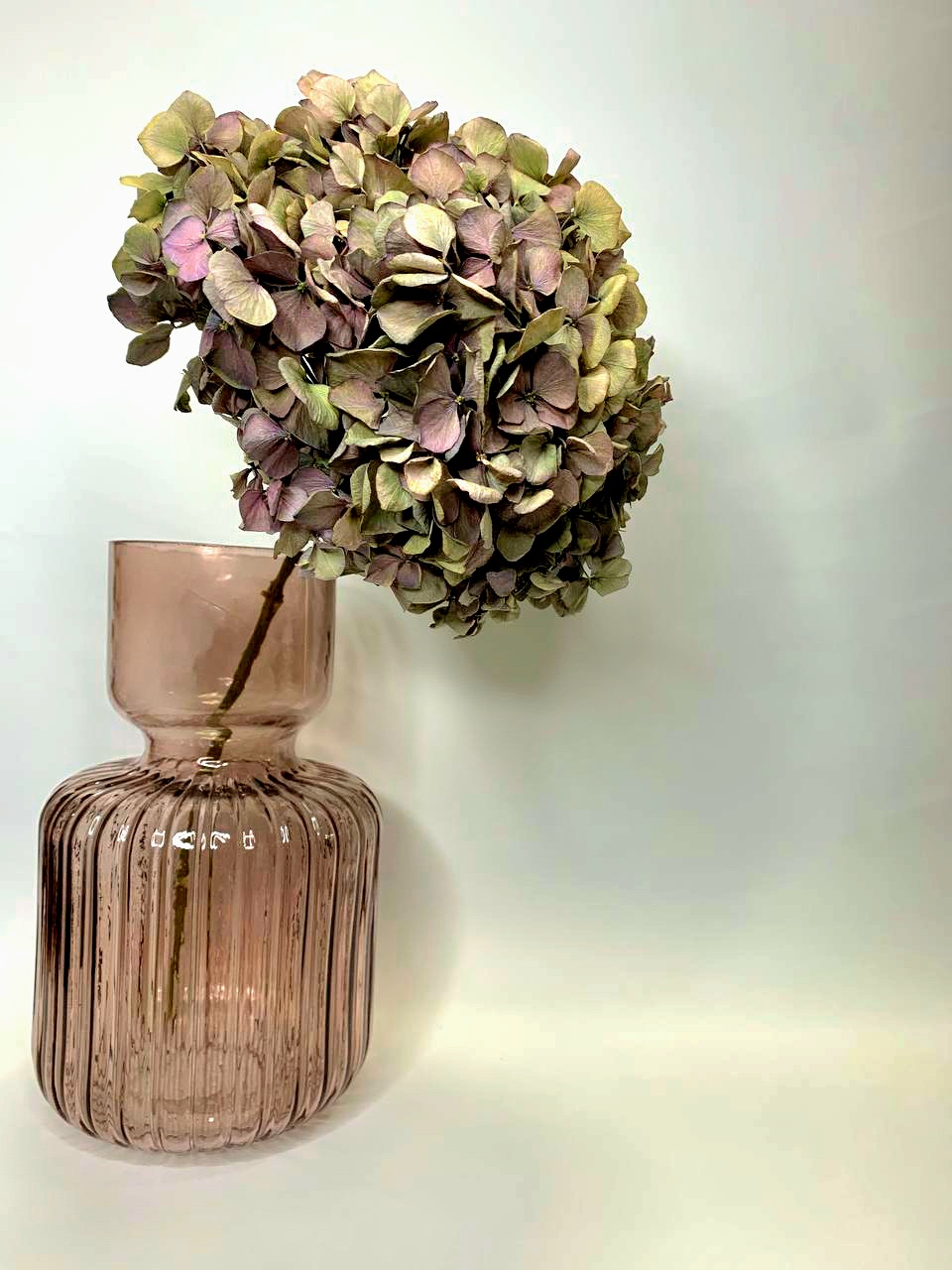 Ваза из цветного стекла — отличный цветовой акцент, благодаря которому вы можете «поддержать» любимый оттенок в комнате. Благодаря рифленой поверхности стекла ваза выглядит более эфектно.